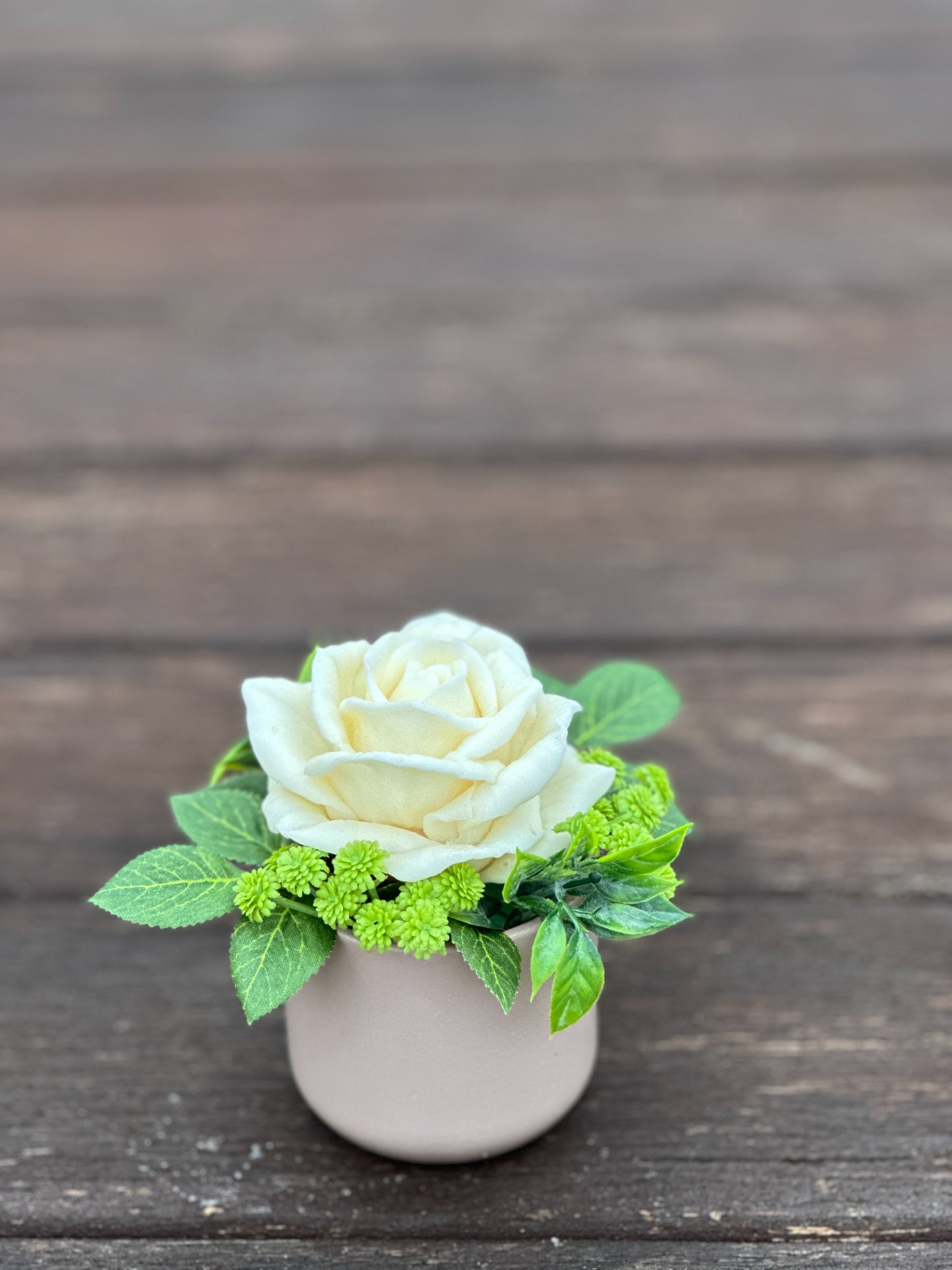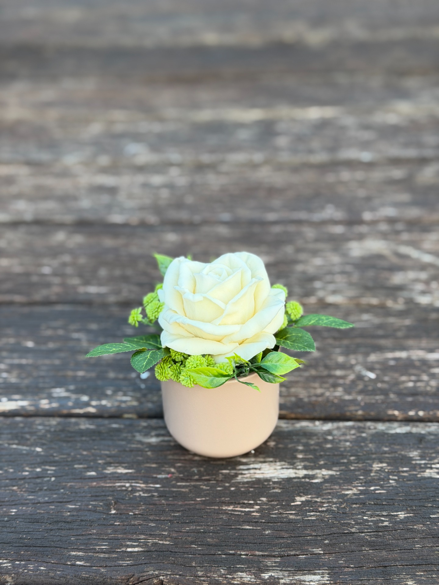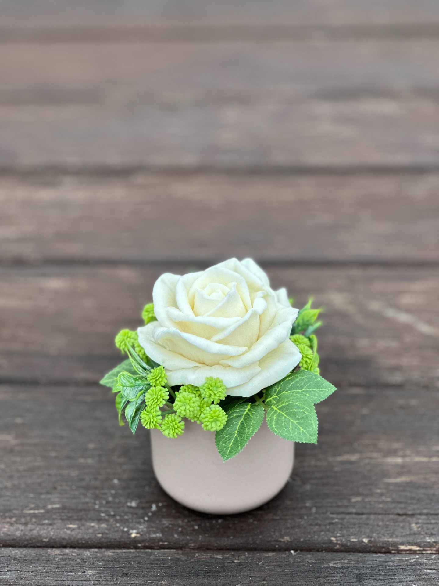 dekorační mýdlová kytice : ručně vyrobená mýdlová květina s příjemnou květinovou vůní, keramický obal, dodekorováno umělými rostlinami