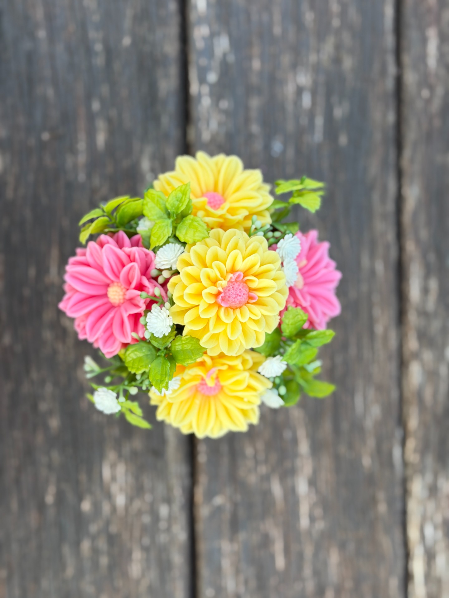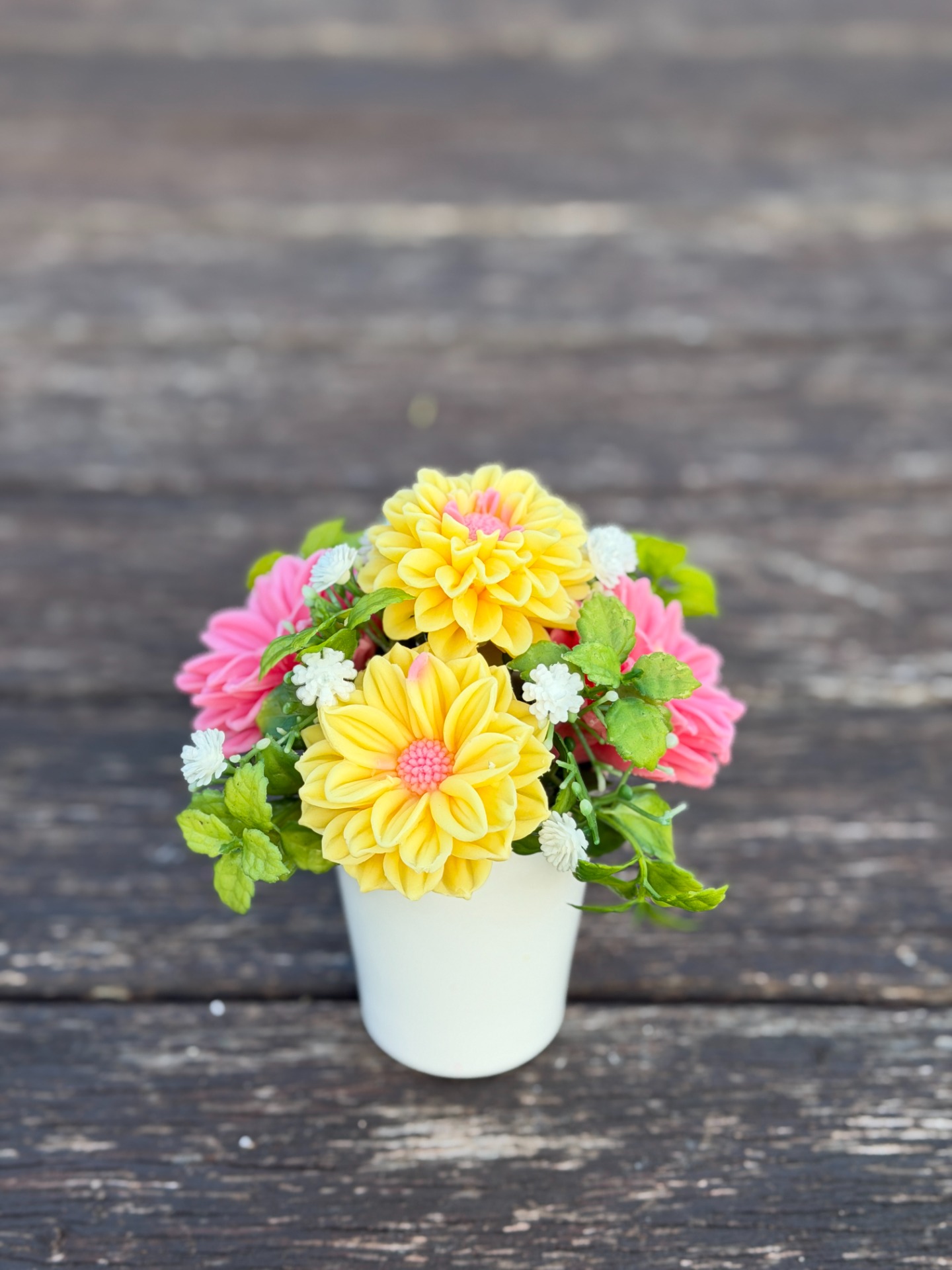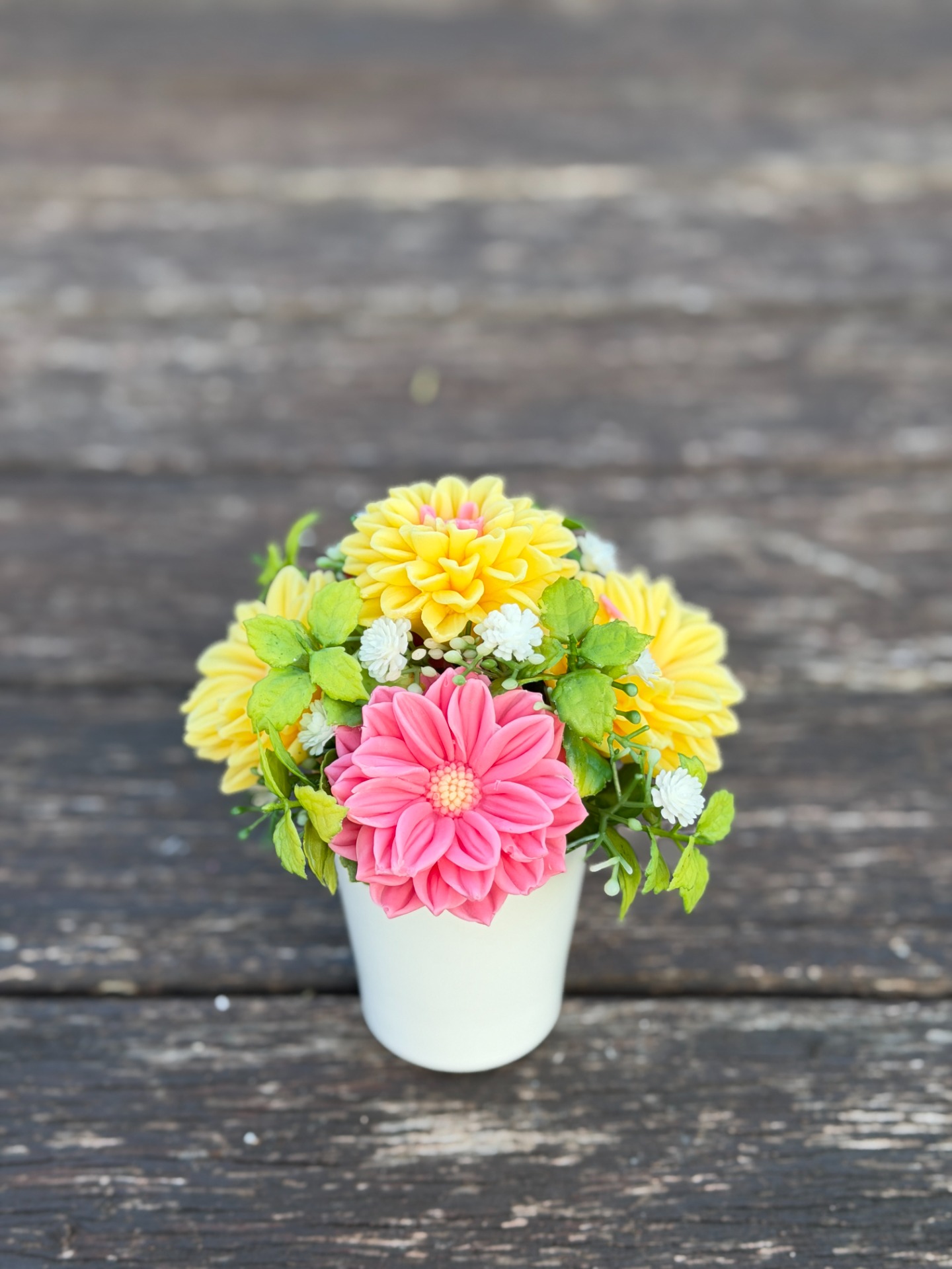 dekorační mýdlová kytice - ručně vyrobené mýdlové květiny s příjemnou květinovou vůní, dodekorováno umělými květinami, keramický obal