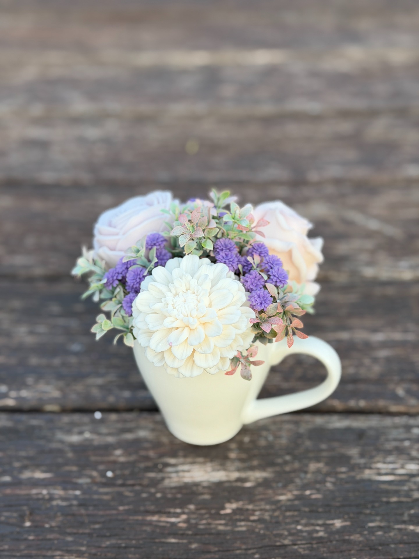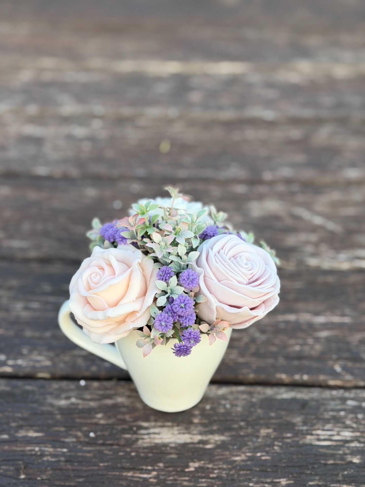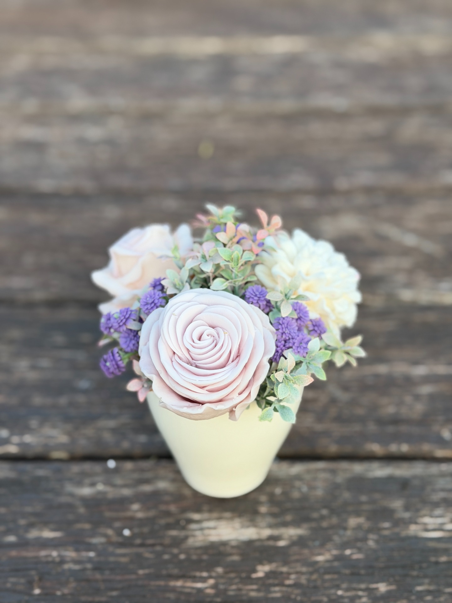 dekorační mýdlová kytice - ručně vyrobené mýdlové květiny s příjemnou květinovou vůní, dodekorováno umělými květinami, keramický obal