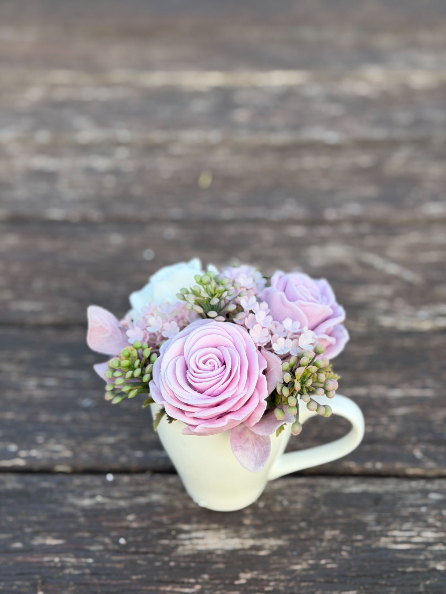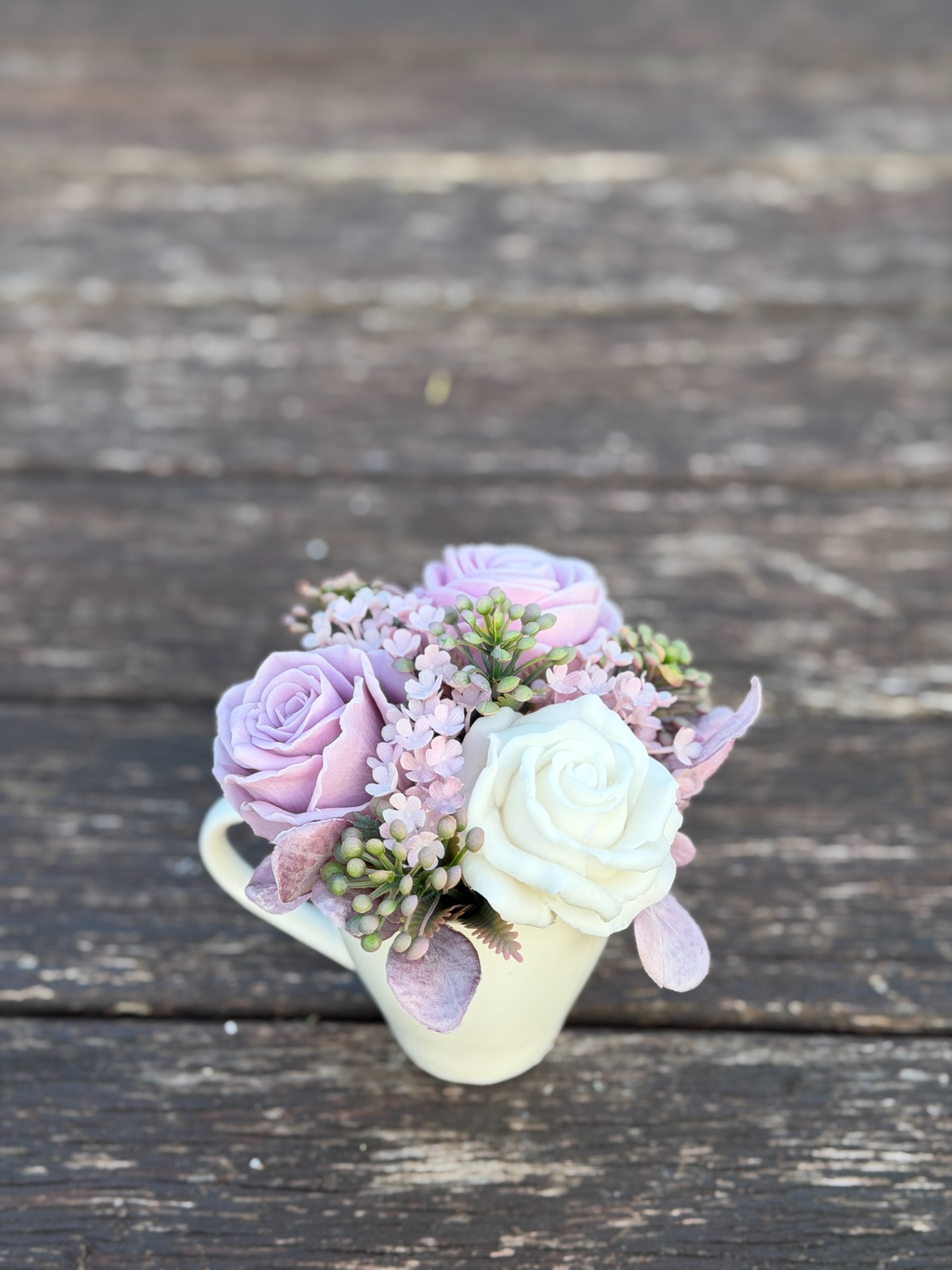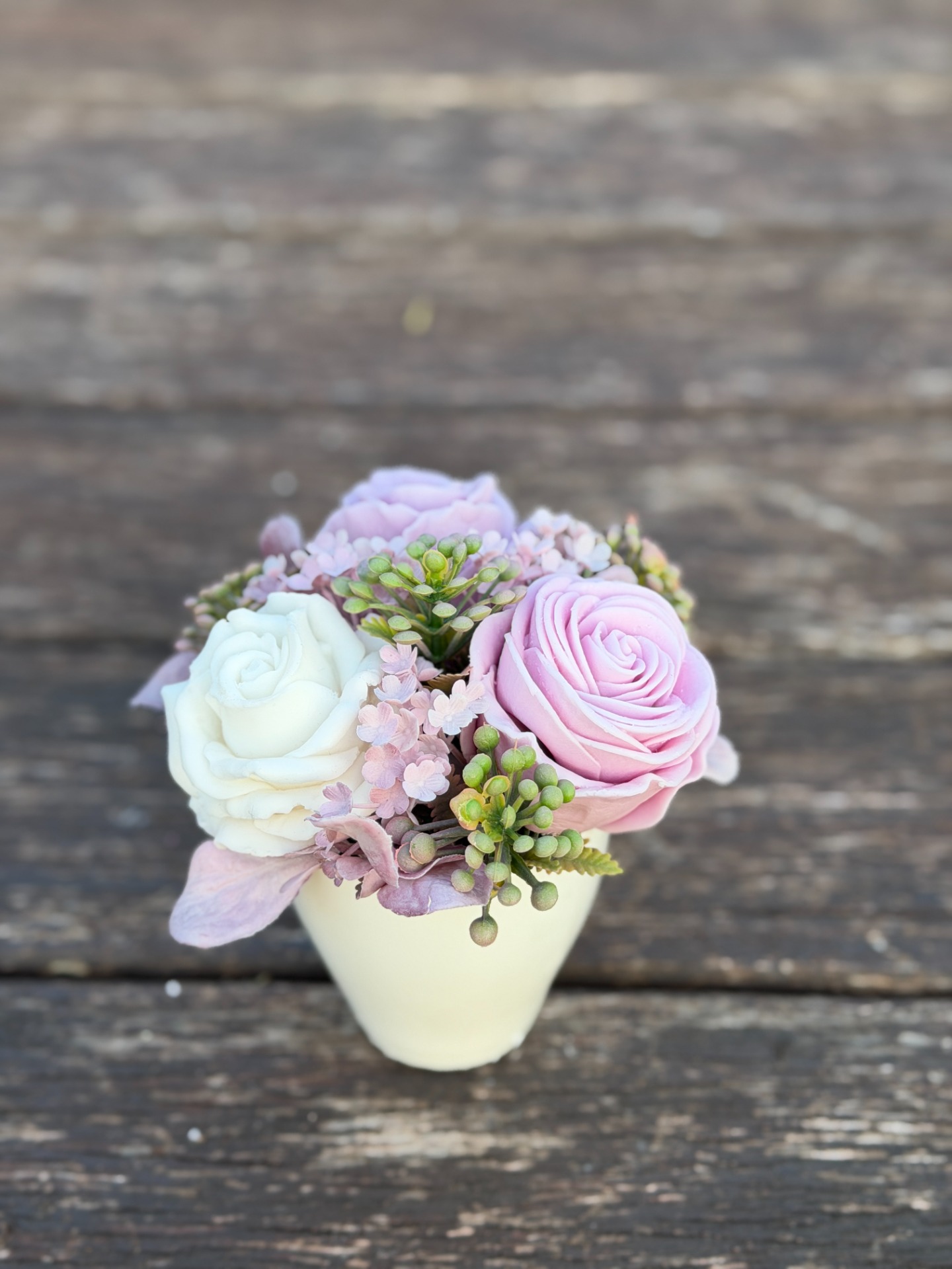 dekorační mýdlová kytice - ručně vyrobené mýdlové květiny s příjemnou květinovou vůní, dodekorováno umělými květinami, keramický obal