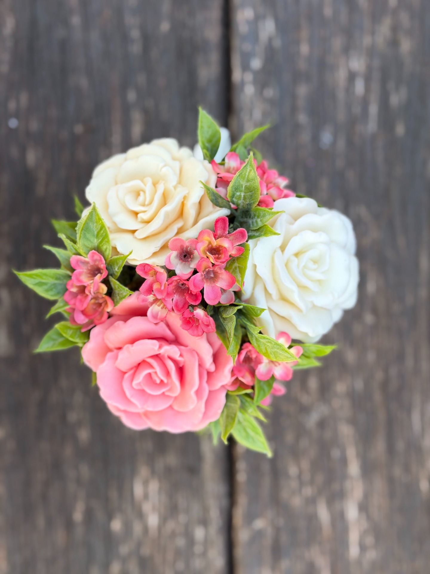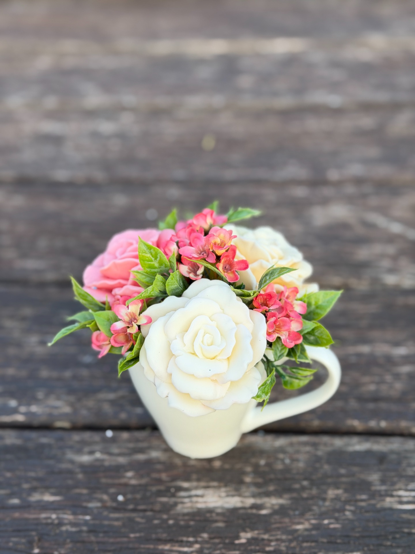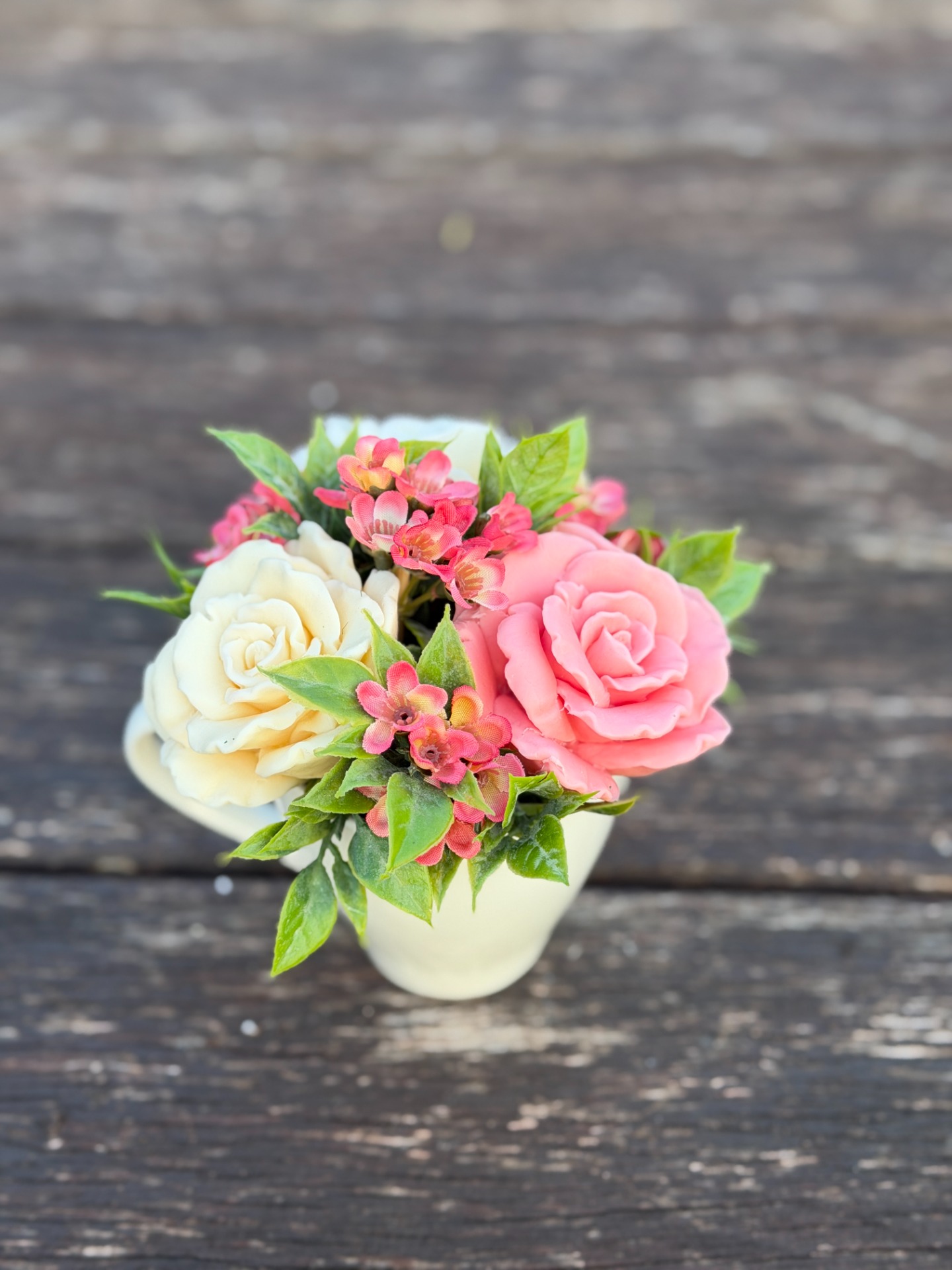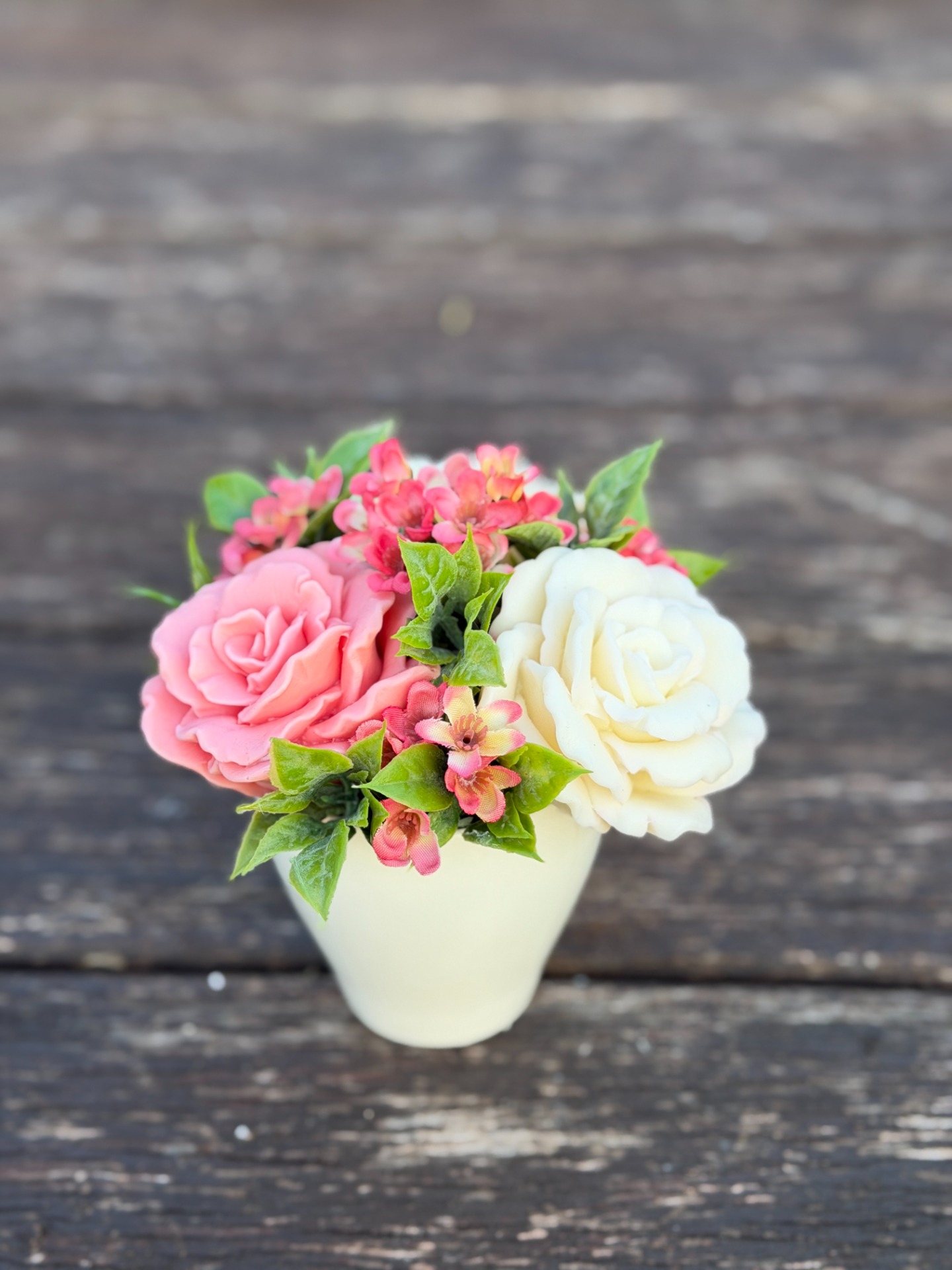 dekorační mýdlová kytice - ručně vyrobené mýdlové květiny s příjemnou květinovou vůní, dodekorováno umělými květinami, keramický obal