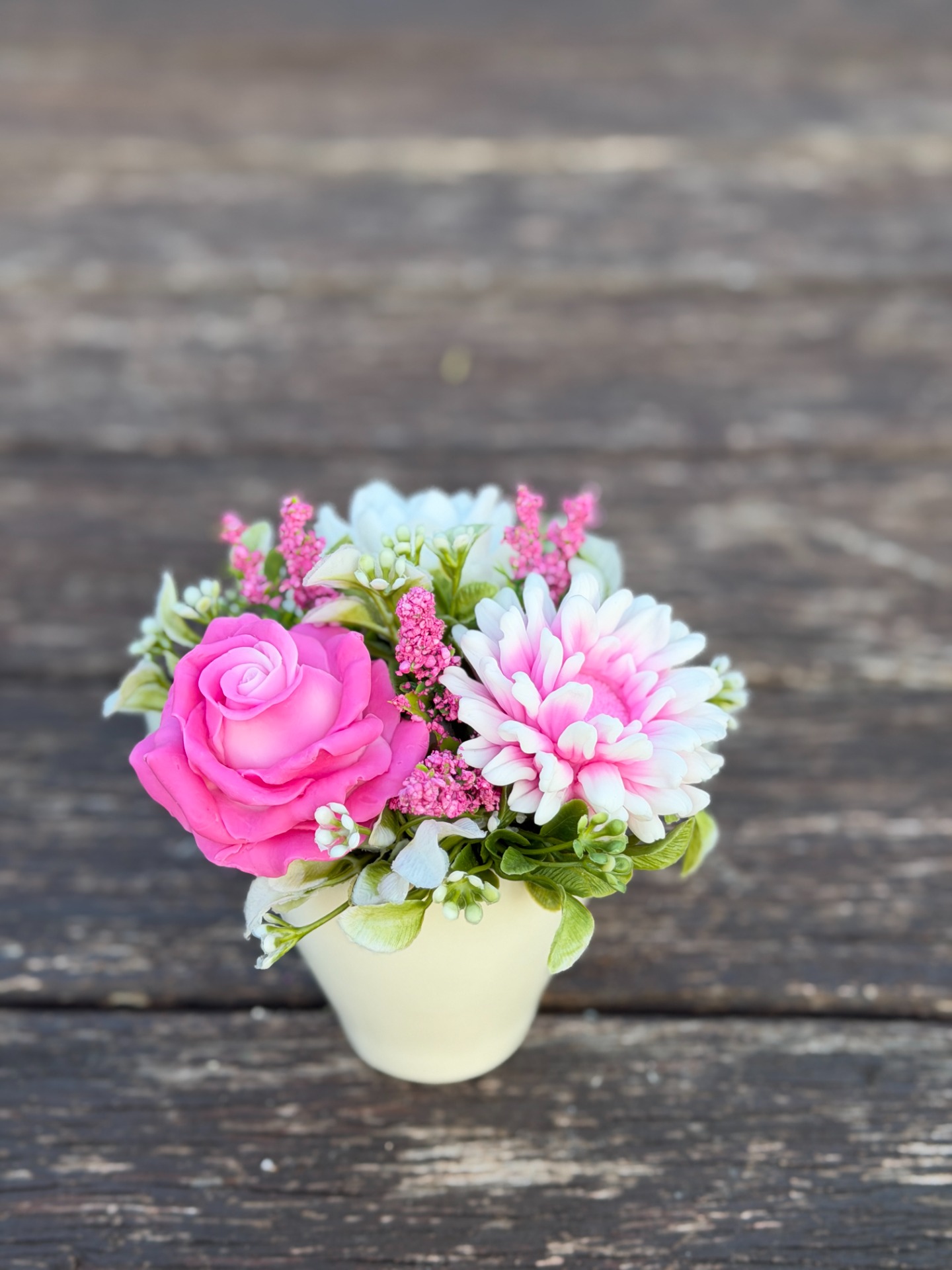 dekorační mýdlová kytice - ručně vyrobené mýdlové květiny s příjemnou květinovou vůní, dodekorováno umělými květinami, keramický obal